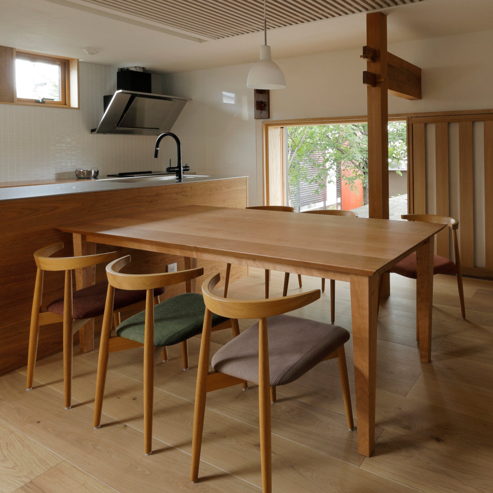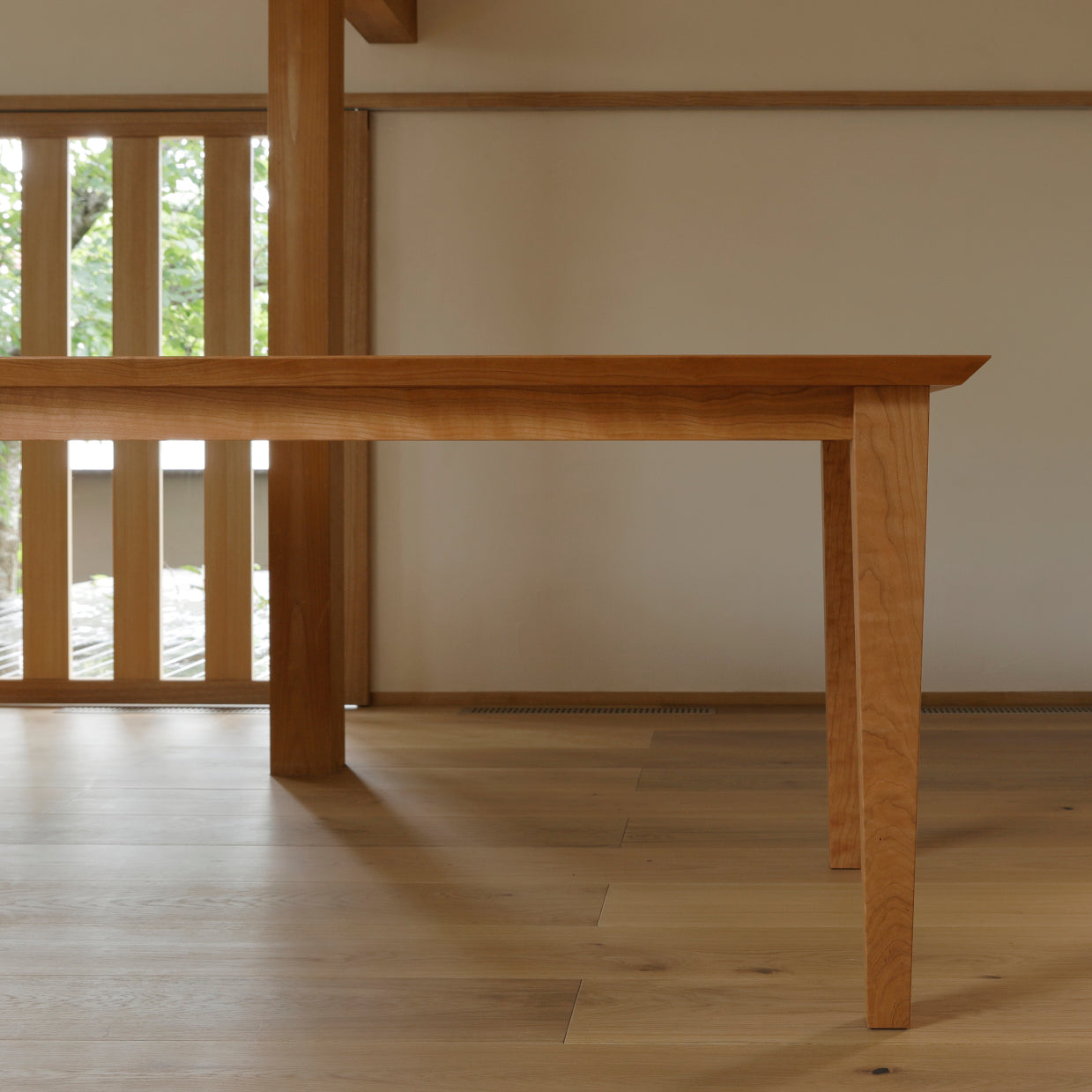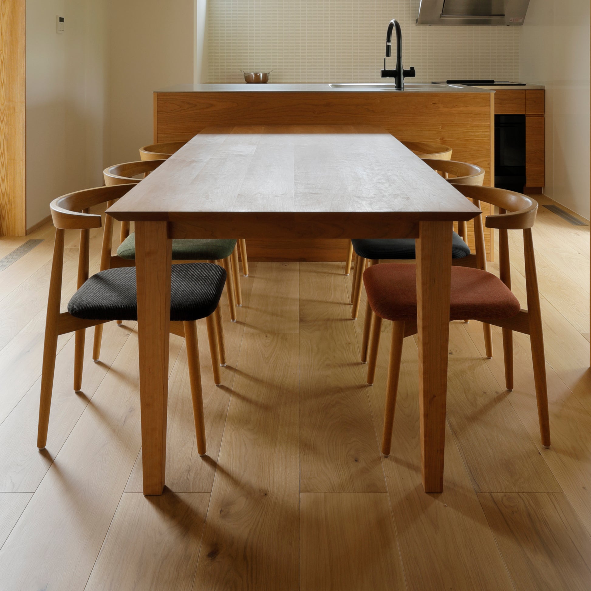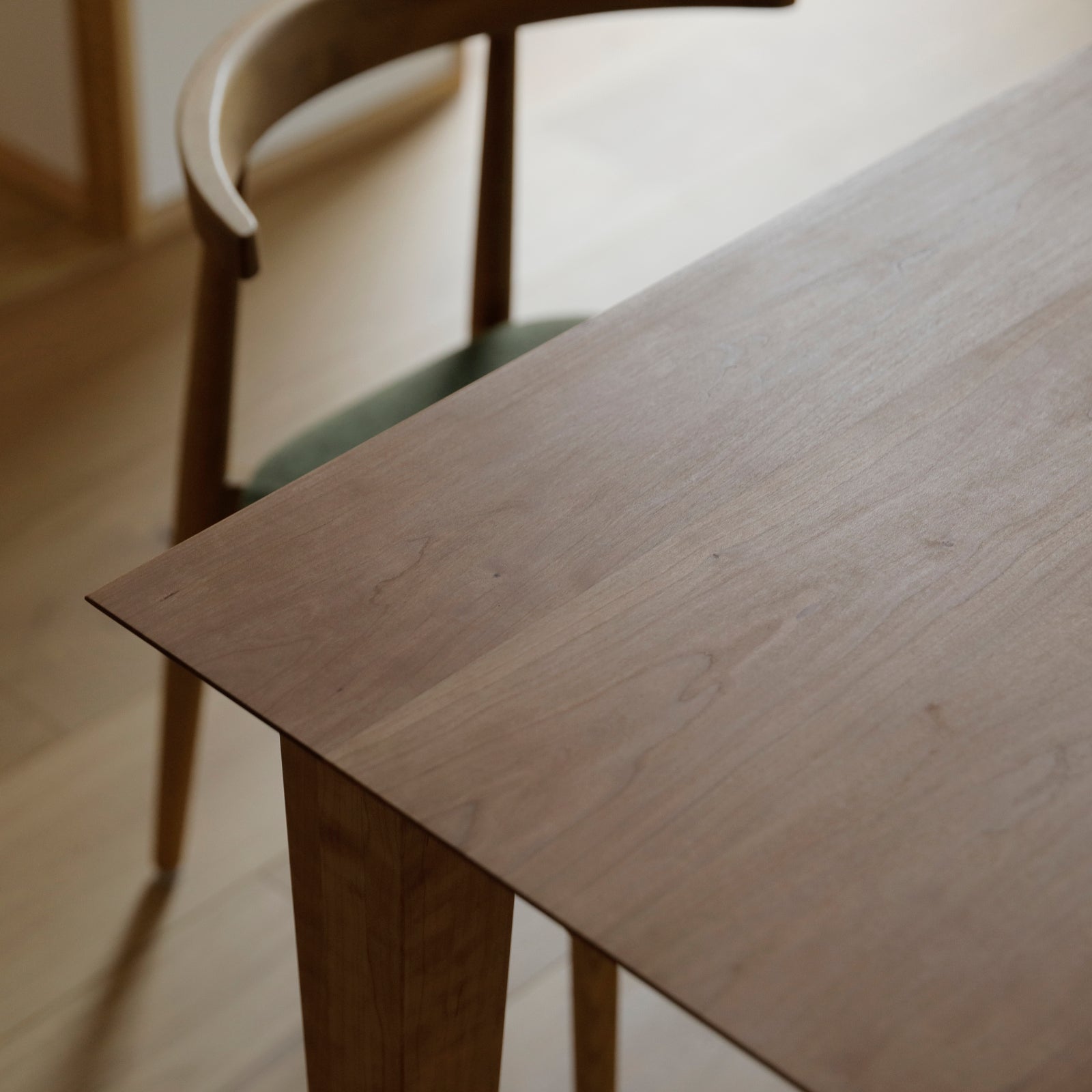 滑らかな質感が魅力のハードメープルタモで、ナチュラルで優しい雰囲気に仕上げたサン工房オリジナルのダイニングテーブルです